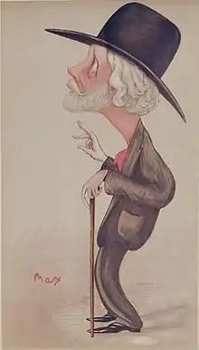 Before his death, Meredith was honoured from many quarters: in 1892 he succeeded Tennyson as president of the Society of Authors; that year there was an honorary doctorate from the University of St Andrews; and at a dinner in his honour in 1895 Thomas Hardy and George Gissing paid tribute to his achievements and his influence on them. Max Beerbohm's caricature for Vanity Fair, published in 1896 and captioned "Our First Novelist", was an indication of Meredith's standing at that time; Beerbohm thought him, Shakespeare apart, the greatest English literary figure.[38]