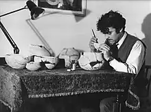 Palao c.โ€‰1977 assembling pottery from fragments found in the caves of Gibraltar.