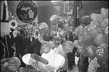 Delegates hold signs and balloons supporting the Michigan governor as a favorite son at the 1964 Republican National Convention