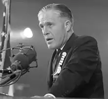 At the convention, Romney fought for a strengthened civil rights plank in the party platform that would pledge action to eliminate discrimination at the state, local, and private levels, but it was defeated on a voice vote.[145][146] He also failed to win support for a statement that condemned both left- and right-wing extremism without naming any organizations, which lost a standing vote by a two-to-one margin.[145][146] Both of Romney's positions were endorsed by former President Dwight Eisenhower,[147] who had an approach to civic responsibilities similar to Romney's.[148] As the convention concluded, Romney neither endorsed nor repudiated Goldwater and vice presidential nominee William E. Miller, saying he had reservations about Goldwater's lack of support for civil rights and the political extremism that Goldwater embodied.[145]