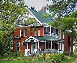 The George W. Wentworth House is a large Queen Anne style home, that was built in 1887 in West Saint Paul in the U.S. state of Minnesota. Wentworth was an emigre from England who traded in horses; he was also involved in local politics, working to organize the city of South Saint Paul. In the late 1880s, a dispute arose between the farmers in the western portion of the city, whom Wentworth represented, and the people living around the stockyards in the eastern portion of the city. West Saint Paul disjoined from South Saint Paul in 1889 and Wentworth remained politically active in the new city. After his death in 1908, the house remained vacant for many years before being renovated by subsequent owners.[2][3]
