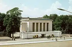 The Georgi Dimitrov Mausoleum (Bulgarian: мавзолей на Георги Димитров) was a ceremonial tomb on Prince Alexander of Battenberg Square in Sofia, Bulgaria. It was built in 1949 to house the embalmed body of Georgi Dimitrov, the first leader of Communist Bulgaria.[1] After his death in 1950, the second communist leader of Bulgaria, Vasil Kolarov, was buried in the second niche of the east wall of the mausoleum. In 1999, following a heated public debate, it was destroyed by Ivan Kostov's UDF government.