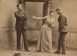 In 1886 Cayvan contracted with Daniel Frohman, becoming the star of the Lyceum Theater in New York.[2] Cayvan toured with her own company (which included Lionel Barrymore) starting in 1896.[2][3] In March 1897, she performed with her company in El Paso, Texas in a production called "Squire Kate".[13] She was involved in a difficult divorce case in 1896 as being the other woman.[14] She was, however, totally exonerated after defending herself. Cayvan received much support from several women's groups.[2][3]
