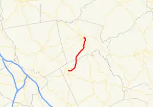 SR 243 was established in 1946 along an alignment from Gordon to Scottsboro.[2][3] By 1952, the section from the southern terminus to about Ivey and a section just southwest of Scottsboro were paved.[6][7] In 1953, the entire route from Gordon to Scottsboro was paved.[7][8]. Between 2013 and 2015, a new road was built from SR 243 north-northeast of Ivey to US 441/SR 29 south-southeast of Scottsboro.[9][10] The segment between the Scottsboro and Sandersville areas was completed and opened to traffic in October 2016.[11] In 2016, the new portion of highway was extended to SR 24 southeast of Milledgeville, and SR 243 was shifted onto it. The entire portion that had been concurrent with US 441 Bus. in Milledgeville was redesignated as SR 29 Bus.[12][13] Between the beginning of 2017 and the beginning of 2019, SR 243 was decommissioned, with its final routing being entirely replaced by SR 540.[13][4]
