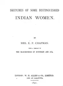 - ↑ Chapman, Mrs E. F. (1891). Sketches of Some Distinguished Indian Women. W.H. Allen & Company, Limited.