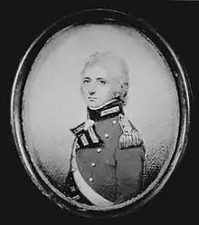 The town became the headquarters of the British in Maine, and on 12 September Sherbrooke left to attack Machias before going back to Canada. Gosselin was given command of the Castine Garrison as Provincial Governor of the newly captured area, working with Rear Admiral David Milne.[18][19] Much effort was put into pacifying the territory, and Gosselin allowed the Americans to continue with their own judicial system and trade, as long as it was self-contained or with British controlled territories.[20] Gosselin also prepared defences against any counter attack to retake Castine, rebuilding the destroyed fort and accompanying half-moon redoubt and adding several new defensive features.[21] He was well-liked during his "mild and humane" tenure in Castine, and when the British left the occupied territory on 26 April 1815 at the end of the war, Gosselin took with him the good regard of the Americans but also £11,000 of funds gained through his control of customs.[20][16]
