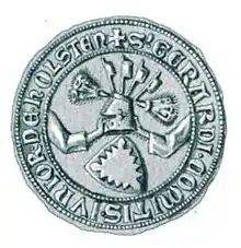![]() Seal of Gerhard IV as Count of Holstein-Ploen, c. 1312-1314 | |