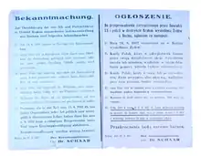 - ↑ A few days later, announcements with a similar content were published in all counties of the district. See: Młynarczyk and Piątkowski 2007?, p. 70.