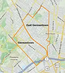 - ↑ "About East Germantown". PlanPhilly.com. Archived from the original on 19 October 2013. Retrieved 17 October 2013.