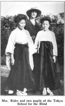 - ↑ Gertrude T. Rider, "Some Notes on the Blind of Japan" Outlook for the Blind (Spring 1916): 10-16.