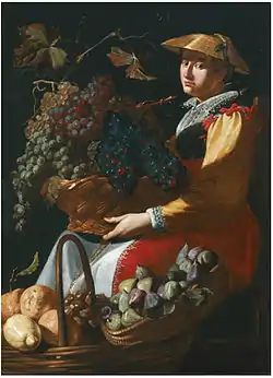 - ↑ Giacomo Legi (circa 1600–1640/1645), A lady selling fruit, including figs, lemons and grapes at Sotheby's