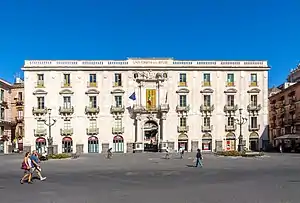 In front of this building, Vaccarini designed a fountain, consisting in an obelisk upon the back of the elephant u Liotru (symbol of Catania), inspiring to the Hypnerotomachia Poliphili. Vaccarini completed the square by designing the main facade of the cathedral, a thirty-year project not completed until 1768. According to Professor Anthony Blunt, the cathedral was not one of Vaccarini's successes.
