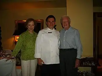 In 1986, the young Chiarini enrolled in the Instituto de Alta Gastronomia de Caracas, Venezuela, which has been closed due to political unbalances in the country. In 1996, he decided to go back to the United States where he enrolled at the Pittsburgh Culinary Institute a branch of the world renowned, Le Cordon Bleu. After graduation, he moved to France where he enroll at Le Cordon Bleu Paris[9] one of the most ambitious and prestigious culinary schools in Europe. Chiarini worked under masters like Alain Dutournier chef/owner of Carré des Feuillants (*** Michelin stars), and later while in Rome, Italy working under the enigmatic Executive Chef Heinz Beck at La Pergola Restaurant (***Michelin stars), and in Ferrara, Italy working for top-level restaurants such as, Antichi Sapori and Hostaria Savonarola as a sous chef. Moving became again imminent, when The Pirsch Mühle (* Michelin star), restaurant in Germany offered him the opportunity to run the kitchen along with the Executive Chef and owner, S. Leypold. In early 2000’s Chiarini decided to move to the Middle East, starting with Intercontinental hotels, Al Bustan Palace and Shangri-La Hotels. Later he moved to Bahrain, and developed culinary concepts for Mövenpick and Marriott hotels. His next target was Kuwait, where he fully engaged his culinary career as chef with Marriott Hotels. In Kuwait Chiarini developed a close relationship with the late Highness Sheikh Jaber Al-Ahmad Al-Jaber Al-Sabah, where he created exotic dinners for the family. There he became widely known as a celebrity TV chef, with the broadcasting channel “Al Rai TV”. Chiarini starred in more than 50 cooking shows. Chiarini continues his culinary journey in Africa with the Starwood hotels chain, in one of the most luxurious and posh properties in Eastern Africa; the Sheraton Addis, part of the Luxury Collection of Starwood hotels. Ethiopia is well known for being the diplomatic capital of Africa. Here Chiarini served personalities like; the 39th President of the United States of America, Jimmy Carter and first lady Rosalynn Carter[10] the president of Israel Shimon Peres, the Presidents of the (AU) African Union, including Muammar al- Qaddaf, and Egyptian President Hosni Mubarak. His time spent in Asia has inspired him to travel throughout the continent immersing him in the food, and absorbing the culture giving him a great appreciation and deep understanding of the Asian culture. Countries like China, South Korea, Cambodia, Vietnam, Thailand, Malaysia, Singapore, Japan and the Philippines.