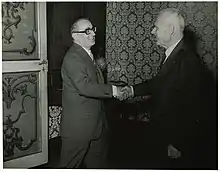 ![]() Gianni Granzotto shaking Sandro Pertini's hand | |