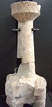 This evolution suggests that besides the commissioners, also the sculptors of the statues of Mont'e Parma could have been Nuragic. In fact, within the Nuragic civilization craftsmen able to perform perfect stonework were certainly at hand, as demonstrated by the refined sacred wells and giant's graves built in the isodomic technique.[33] The ability in handling stones and the spread of sculpture in the round throughout Nuragic Sardinia, is also attested by the nuraghe models mentioned above and by sculpted protomes found in several sacred wells.[8]