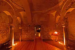 Located within the museum's basement level lie the remains of a Moorish bath house built around the 14th century during the rule of Marinid dynasty.[7] These private baths are known to have been within the Palace of the Governor of Gibraltar.[7] The building was used as stables while the building was under control of the British military with a floor of one of the rooms was raised so high that horse-drawn coaches could be moved into the remaining space in the room.[7] The site is now smaller than it was originally as the building suffered extensive damage during the Great Siege of Gibraltar. It is one of the best-preserved Moorish bath houses in Europe.[12] In 1906, Mr. Budgett Meakin, an authority on Moorish antiquities, wrote of these baths: