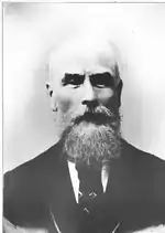 Giles J. Gibbs was born in Jefferson County, New York in 1827, the son of David and Hannah Gibbs.[3] His parents died when Gibbs was eight years old, and he worked as a farm hand while growing up. He eventually attended Spring Arbor College and bought a farm in Jackson County, Michigan. He later worked as a drayer, then as a grocer and a representative of a drug firm. In 1857, he arrived in St. Johns and purchased a lot, then built a grocery store. He sold the business, engaged in real estate speculation, and built a home.
