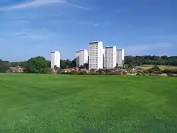 The Gilley Law Tower blocks and surrounding village