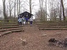 The Pigsty, a small gardeners shed located on The Orchard, has been preserved as the first campsite at Gilwell Park.[35] The first group of Rover Scouts who arrived to prepare the site when it was purchased in 1919 slept here when the weather proved too inclement to pitch their tents.[a]