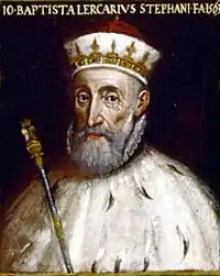 Giovanni Battista Lercari was elected on 7 October 1563 the new doge of the Republic of Genoa, the nineteenth since the biennial reform and the sixty-fourth in republican history. His Dogate was dominated by a new internal contrast between the "old" and "new" nobility that fractured after the clashes that took place in Corsica, after the death of the admiral Andrea Doria and above all from the new international scenarios. Giovanni Battista Lercari died in 1592 in the Genoese capital leaving as his only heir his daughter Pellina.[1][2]