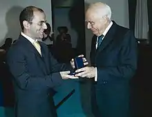 ![]() Girolamo Sirchia with Alberto Pellai (left) in 2004. | |