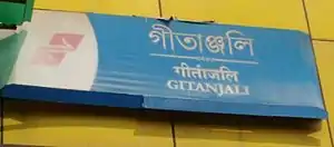 Gitanjali is an elevated metro station on the North-South corridor of the Blue Line of Kolkata Metro which is located in Naktala, Kolkata, West Bengal, India.[2][3] It is named after the famous 'Gitanjali' or Song Offerings, a collection of 103 English poems, largely translations, of the Bengali poet Rabindranath Tagore.