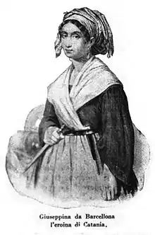 The patriot in a 19th-century print, captioned as "Josephine from Barcellona, the heroine of Catania."