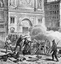 Hearing the blast and feeling confident that Peppa's cannon was no longer loaded, they charged at her to regain their lost ground, but the woman, remaining courageously steadfast at her post, waited for them, ready to open fire with the cannon she had commandeered. She waited until they were a few meters away before firing the real shot at them, inflicting considerable damage. It was thus that Giuseppa Bolognara succeeded in scoring a direct hit on the Bourbon army and then made it to safety. However, her young companion Vanni did not survive the battle.[1][3]
