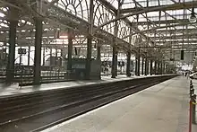 Automatic ticket barriers were installed at Glasgow Central and three other city-centre stations from 2011 as part of a crackdown on fare-dodging to increase ticket revenue. This follows barriers being erected at Queen Street Station in 2004, ending ScotRail's "open stations" policy under which staffed and previous yellow ticket automatic barriers had been scrapped during the 1980s to encourage more passengers; tickets were checked on trains instead. ScotRail finalised negotiations with Network Rail over the project in June 2010,[31] with the project completed in February 2012, covering High Level Platforms 3 to 15 and Low Level Platforms 16 and 17.[32] Platforms 1 and 2 were left without barriers, as they are mostly used by long-distance express services with a high proportion of passengers carrying heavy luggage.