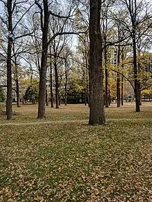 Glebe Park in early November. By far the largest group of trees in the park are the English elm.