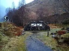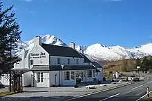 The A87 Road to the Isles runs the full length of the glen, reaching a high point of 271 metres (889 feet) two miles west of the Cluanie Inn.[5] The remnants of the military road connecting Fort Augustus to the Bernera barracks in Glenelg built between 1750 and 1784 by William Caulfeild, the successor to General Wade, can be seen a quarter of a mile west of the Cluanie Inn.[6]