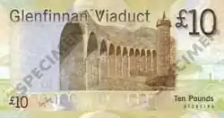 The Glenfinnan Viaduct features on some Scottish banknotes. The 2007 series of notes issued by the Bank of Scotland depicts different bridges in Scotland as examples of Scottish engineering, and the £10 note features the Glenfinnan Viaduct.[21]