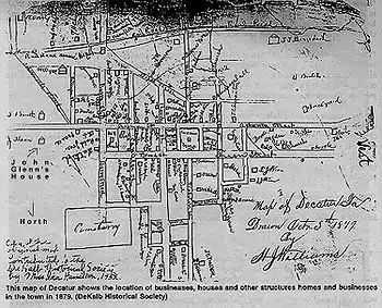 Glennwood Estates has been a distinct parcel since DeKalb County, Georgia, was first divided into parcels. The property passed through a number of owners until it was sold to John T. Glenn, a carpetbagger from New York, c. 1869.[2] Mr. Glenn began developing land in the area in the 1870s. His house is noted on an 1879 map of Decatur.[3] After his death, a small portion of the land was sold for Glenwood School.