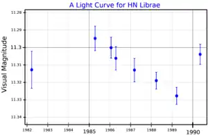 - 1 2 3 4 5 6 7 González-Álvarez, E.; Kemmer, J.; et al. (July 2023). "The CARMENES search for exoplanets around M dwarfs. A sub-Neptunian mass planet in the habitable zone of HN Lib". Astronomy & Astrophysics. 675: A141. arXiv:2305.19677. Bibcode:2023A&A...675A.141G. doi:10.1051/0004-6361/202346276.
