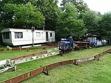 Rich Morris retained his collection of portable industrial monorail equipment, designed by Road Machines (Drayton) Ltd and used for construction projects in the mid 20th century,[51] along with the remains of the Gloddfa Ganol collection: Listers 39005 and 14005, one standard gauge Wickham trolley and Rail Taxi.[22]