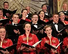 The choir sings in 18 languages and has appeared on the concert stage and in recordings with such artists as Gerre Hancock, Keith Lockhart,[2] John Williams, Samuel Adler, Mark O'Connor, Stephen Cleobury, George Guest, Daniel Pinkham, and Margaret Hillis.[3] It has toured in 23 countries in Europe, Asia, and North America.