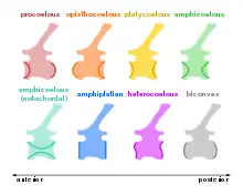 - procoelous (noun: procoely) centra are anteriorly concave and posteriorly convex.
