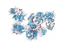 In molecular biology, glycoside hydrolase family 32 is a family of glycoside hydrolases EC 3.2.1., which are a widespread group of enzymes that hydrolyse the glycosidic bond between two or more carbohydrates, or between a carbohydrate and a non-carbohydrate moiety. A classification system for glycoside hydrolases, based on sequence similarity, has led to the definition of >100 different families.[1][2][3] This classification is available on the CAZy web site,[4][5] and also discussed at CAZypedia, an online encyclopedia of carbohydrate active enzymes.[6][7]