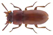 Gnatocerus cornutus, the broadhorned flour beetle, is a common species of beetle in the Tenebrionidae family. It is predominately found in mills as a storage pest and has a wide distribution.[1]