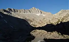 Goat Mountain is a 12,207-foot-elevation (3,721-meter) mountain summit located in Kings Canyon National Park, in Fresno County of northern California, United States.[3] It is situated on Monarch Divide which is west of the crest of the Sierra Nevada mountain range. Topographic relief is significant as the southeast aspect rises 5,600 feet (1,700 meters) above Paradise Valley in 2.5 miles. This feature was so named because mountain sheep, erroneously called goats, were once seen on the slopes.[4] The name was already in use when the first ascent of the summit was made in 1896 by Joseph Nisbet LeConte and party.[5] This mountain's name has been officially adopted by the United States Board on Geographic Names.[3]