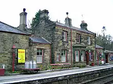 The station buildings were to the design of the NER's architect Thomas Prosser and were very similar to those being built concurrently (by the same contractor, Thomas Nelson) on the Castleton to Grosmont section of the Esk Valley Line at Danby, Lealholm, Glaisdale and Egton. The collection of buildings is very little altered since they were built – the last recorded change (apart from NYMR restoration) was in 1908. A tributary of the River Esk flows close by the station.[5]