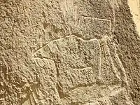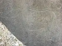 The cultural landscape was firstly discovered by local miner in 1939–40.[12][2] The sticky drawings of the deer, goat and cattle dated between 12th and 8th centuries BC reflect the Neolithic period in Gobustan.[13] Gobustan petroglyphs studied by Isak Jafarzadeh who analyzed approximately 750 rocks with more than 3,500 petroglyphs in 1947 and onwards were divided into 6 periods from ancient times to the Middle Ages: