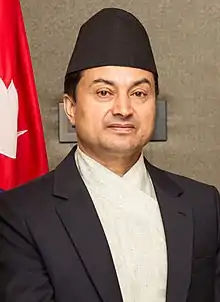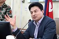 Gokarna Bista (Nepali: गोकर्ण विष्ट) is a Nepalese politician and was Secretary of Communist Party of Nepal (UML).[2][3] He served as Ministry of Energy under the prime minister Jhala Nath Khanal and is former Minister of Labour, Employment and Social Security under KP Oli led cabinet. He was elected in the 2013 Nepalese Constituent Assembly election from Gulmi district constituency number 3.[4] In April 2011, during his tenure as Ministry of Energy, he was stabbed by two motorcyclists.[5] He became popular for revolutionary changes in power sector of Nepal.[4]
