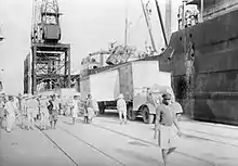 British war material being offloaded in Takoradi in the Gold Coast