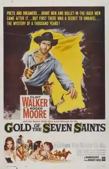 Gold of the Seven Saints is a 1961 American Western film adaptation of a 1957 Steve Frazee novel titled Desert Guns. Released by Warner Brothers, the 88-minute film starred Clint Walker, Roger Moore, Letícia Román, Robert Middleton, and Chill Wills. It was directed by Gordon Douglas, who had earlier directed Walker in 1958's Fort Dobbs and 1959's Yellowstone Kelly. Leigh Brackett wrote the screenplay and Joseph F. Biroc provided the black-and-white photography, most of which was shot in and around Arches National Park in Utah. The film did not do very well at the box office.[1][2]