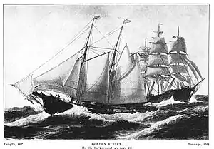 Golden Fleece was an 1855 medium clipper in the California trade, built by Paul Curtis. She was known for arriving with cargoes in good condition, for making passages in consistently good time, and for catching fire with a load of ice.