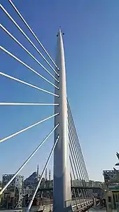 The Golden Horn Metro Bridge (Turkish: Haliç Metro Köprüsü) is a cable-stayed bridge carrying the M2 line of the Istanbul Metro across the Golden Horn in Istanbul, Turkey. It connects Karaköy and Küçükpazarı on the European side of Istanbul, and is located between the Galata Bridge and Atatürk Bridge, approximately 200 m (660 ft) east of the latter.[1][2][3] It is the fourth bridge across the Golden Horn[3][4] and entered service on February 15, 2014.[5]