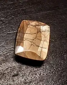 Golden sheen sapphire, (or goldsheen sapphire) is a recently discovered variety of corundum.[2] Goldsheen sapphire has been tested and confirmed in lab reports as "natural sapphire" by GIA, GIT, GRS, AIGS, Tokio gem labs and Lotus.