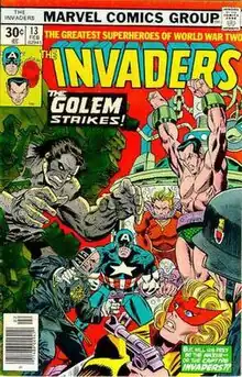 ![]() The Golem makes his first cover appearance. From The Invaders #13 | |