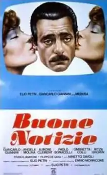 Good News (Italian: Buone notizie) is a 1979 Italian satirical comedy film written and directed by Elio Petri and starring Giancarlo Giannini. It is the last film of Petri.[1][2][3]